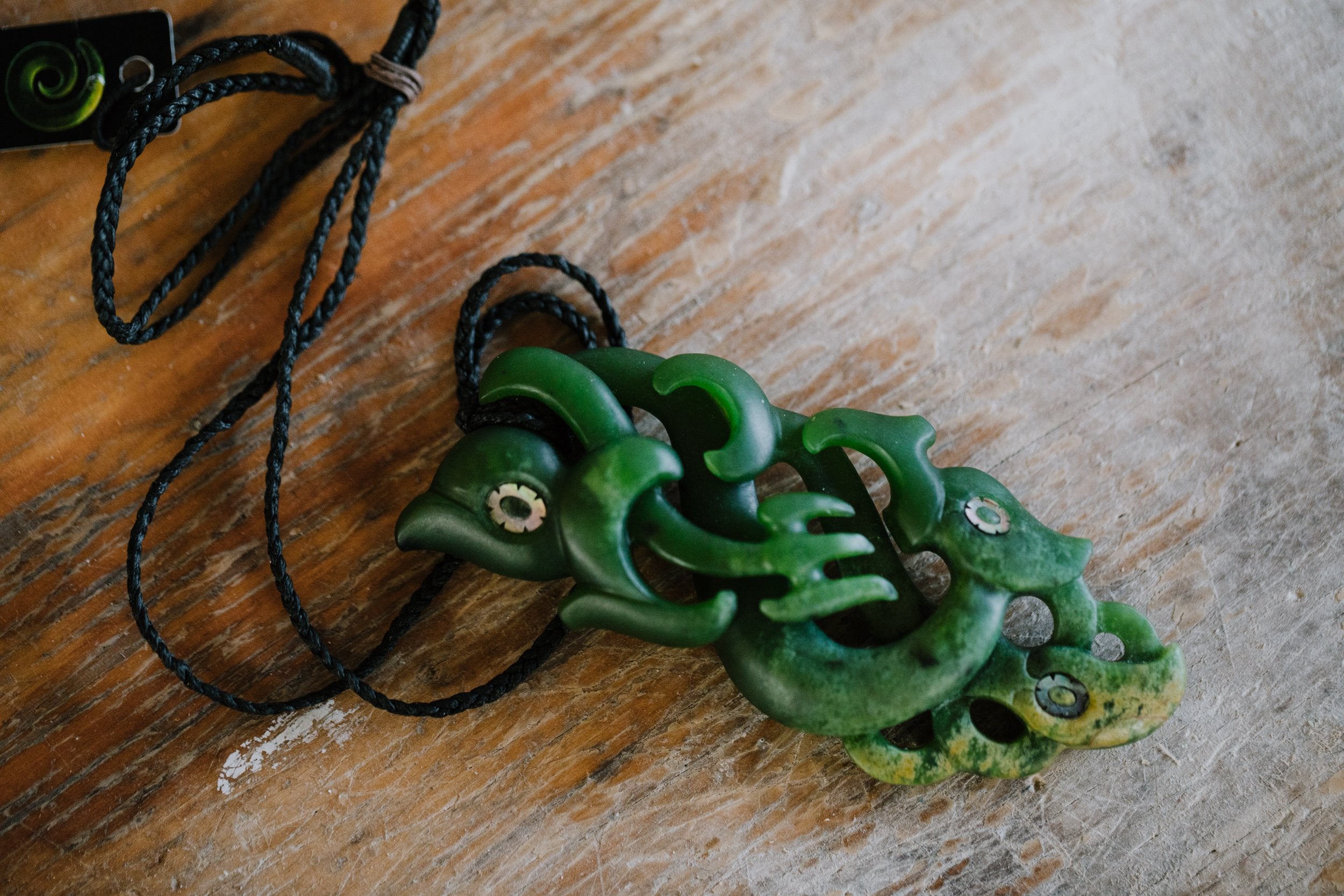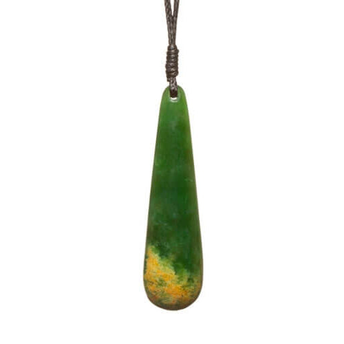 Long greenstone drop pendants are also similar to the toki blade. According to a Maori myth, they represent the tears of crying albatross birds.
