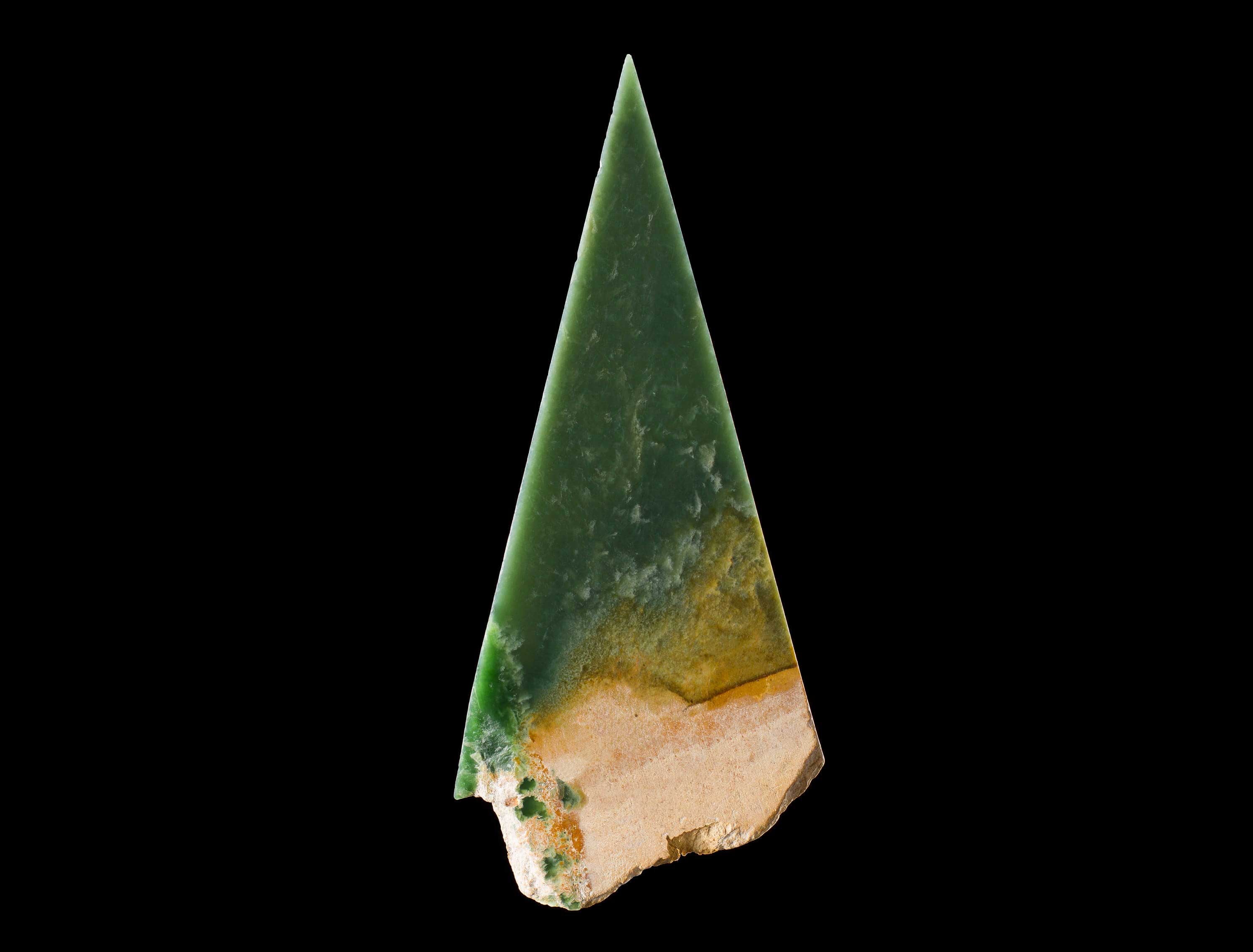 New Zealand nephrite jade, also known as greenstone, or pounamu to Māori, is formed by intensive heat and pressure deep under the earth of the Southern Alps. This precious material has been forced to the earth’s surface by the movement of Pacific and Australian tectonic plates over thousands of years and freed from its origin rock with glacial movements, landslides, and erosion from streams and rivers. New Zealand’s pounamu fields may be small, but they’re home to the finest nephrite specimens in the world.