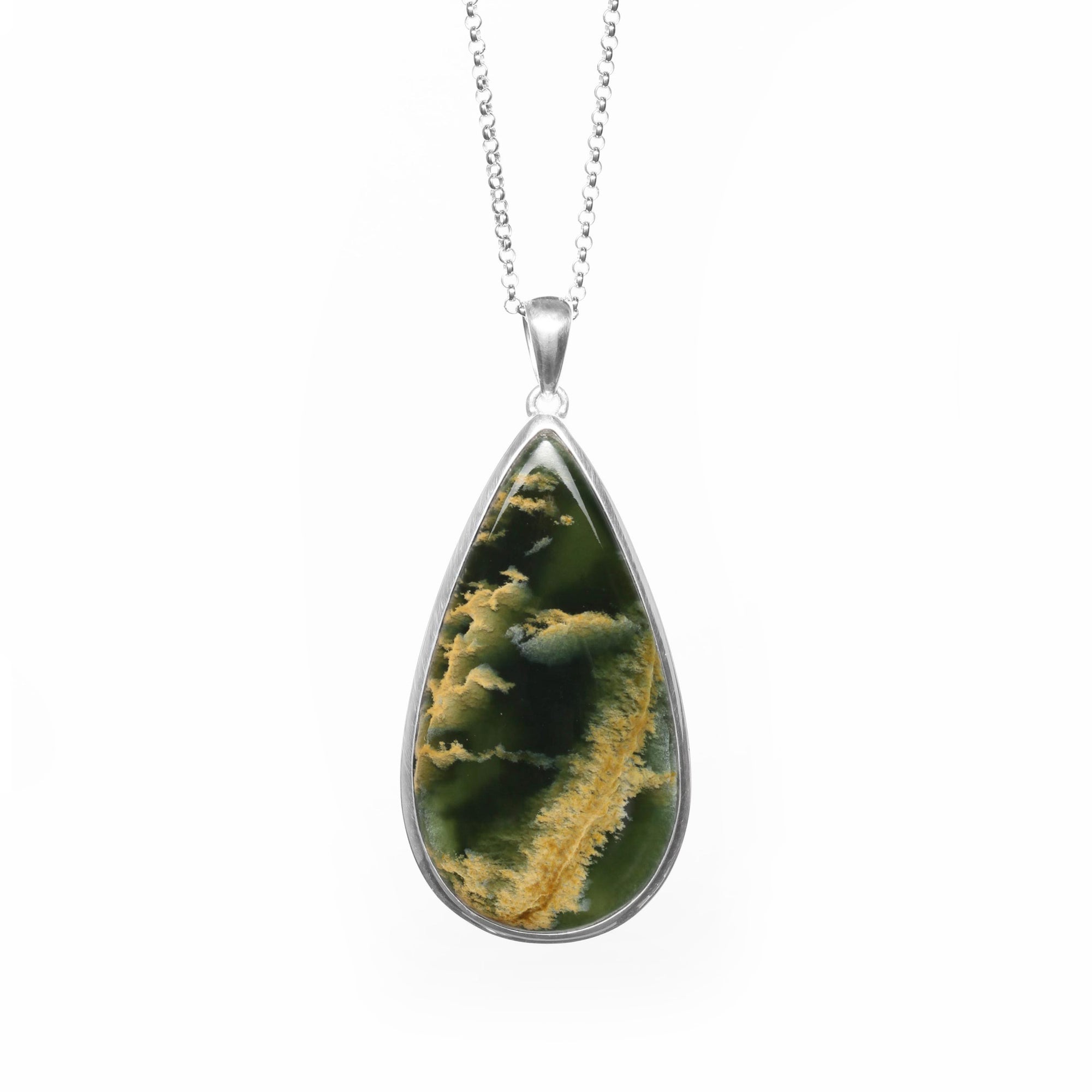New Zealand Flower Jade Sterling Silver Teardrop Pendant