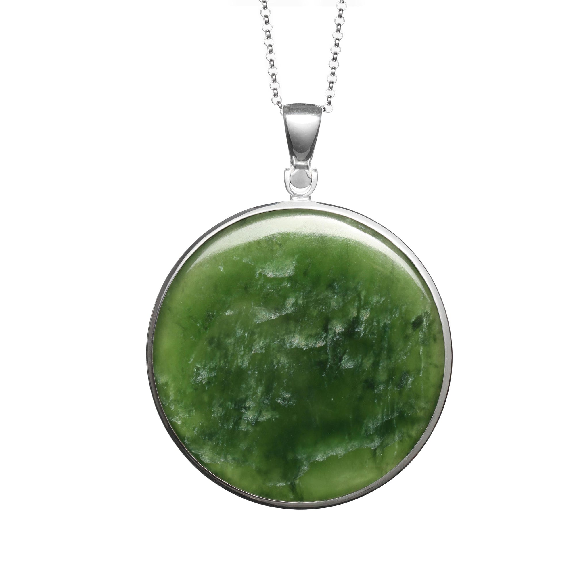 New Zealand Greenstone Sterling Silver Disc Necklace