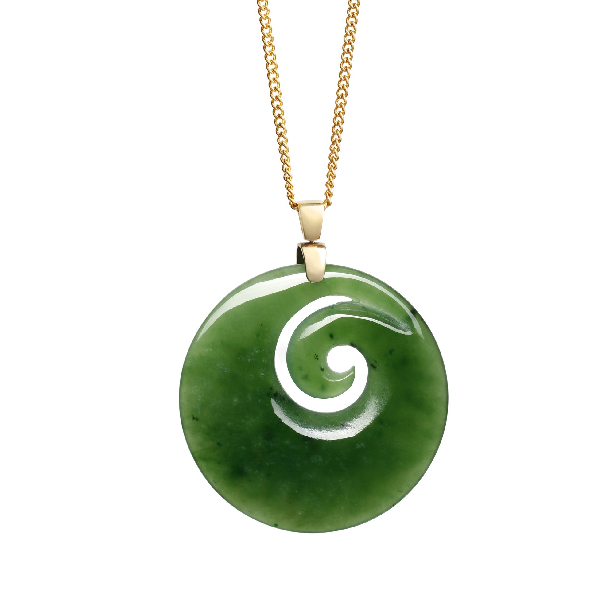 New Zealand Jade Closed Koru on 18CT Gold Bale