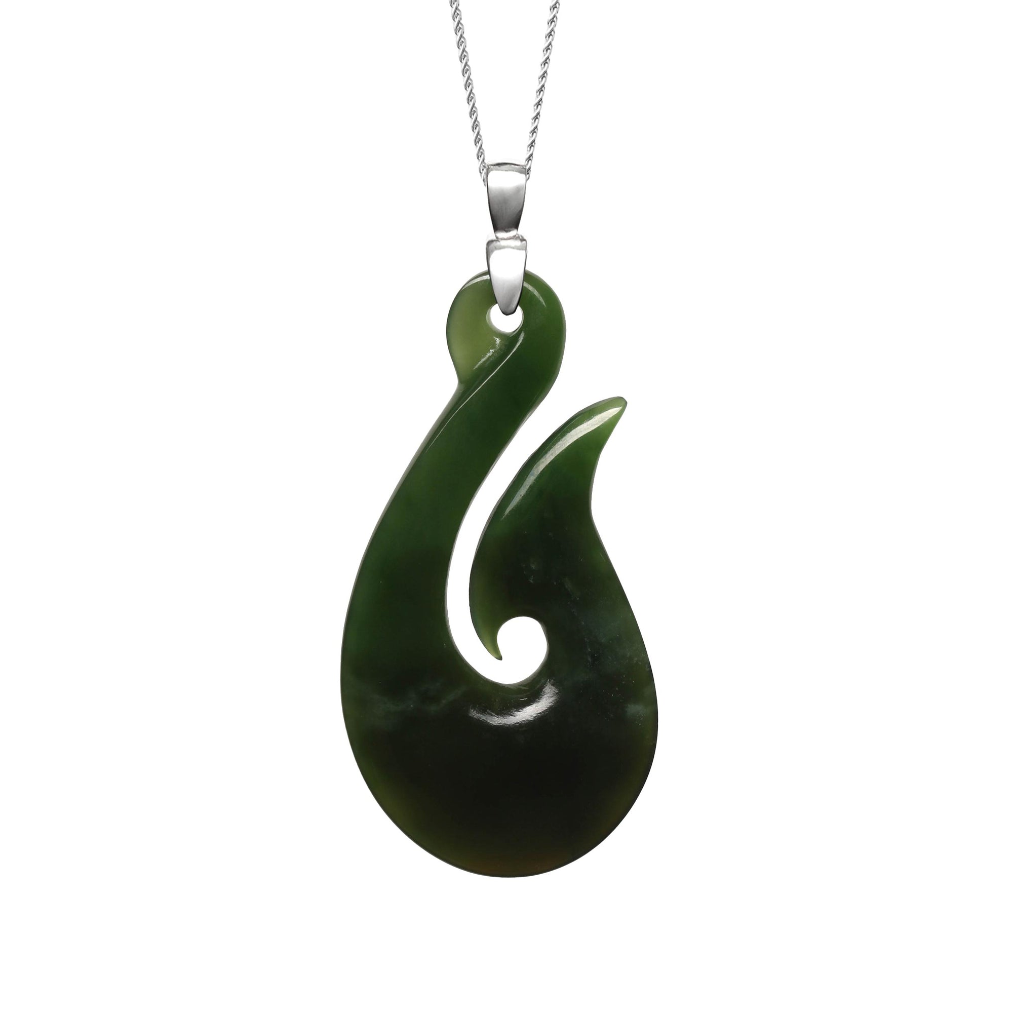 New Zealand Pounamu Hei Matau Necklace on Silver Bale