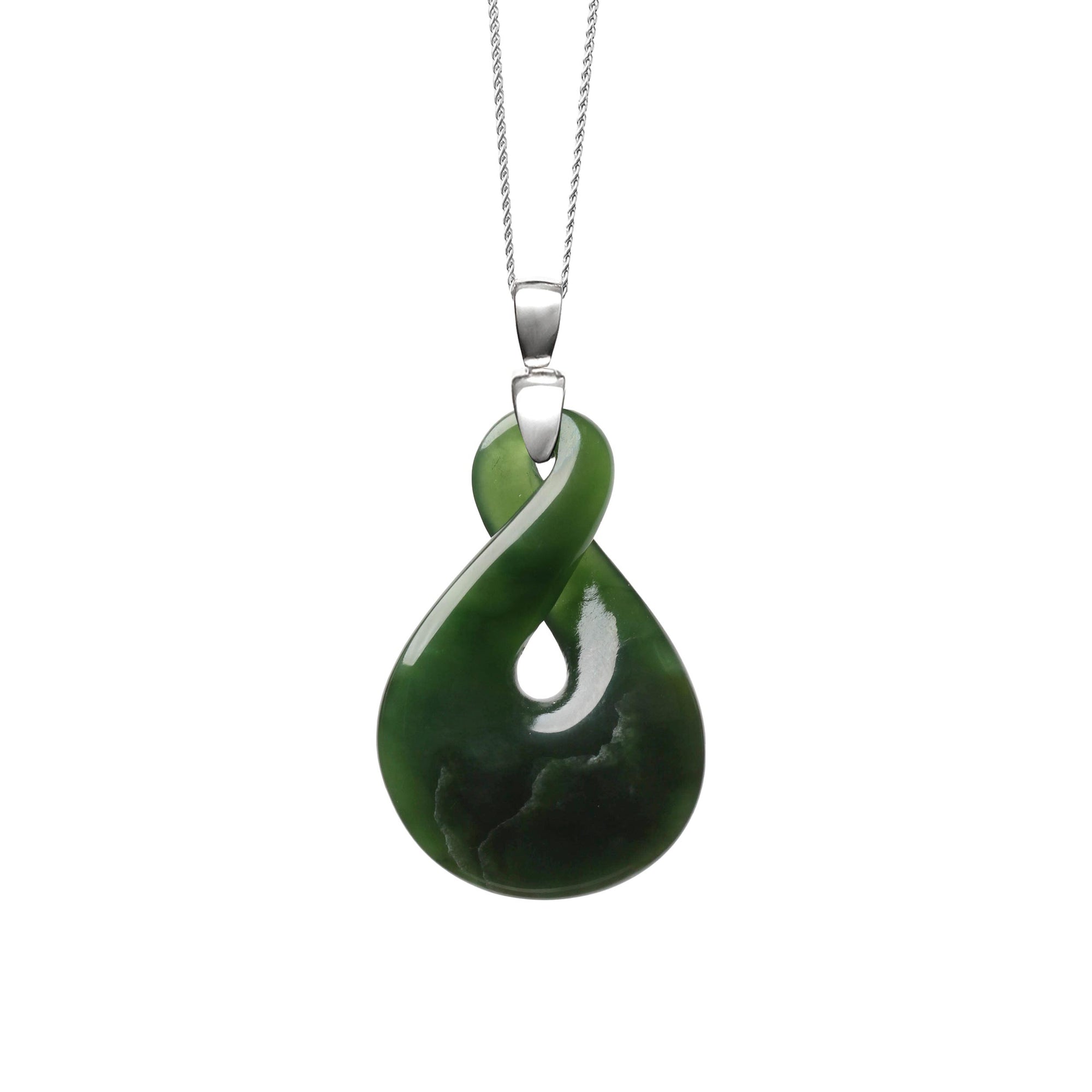 New Zealand Pounamu Single Pikorua on Silver Bale