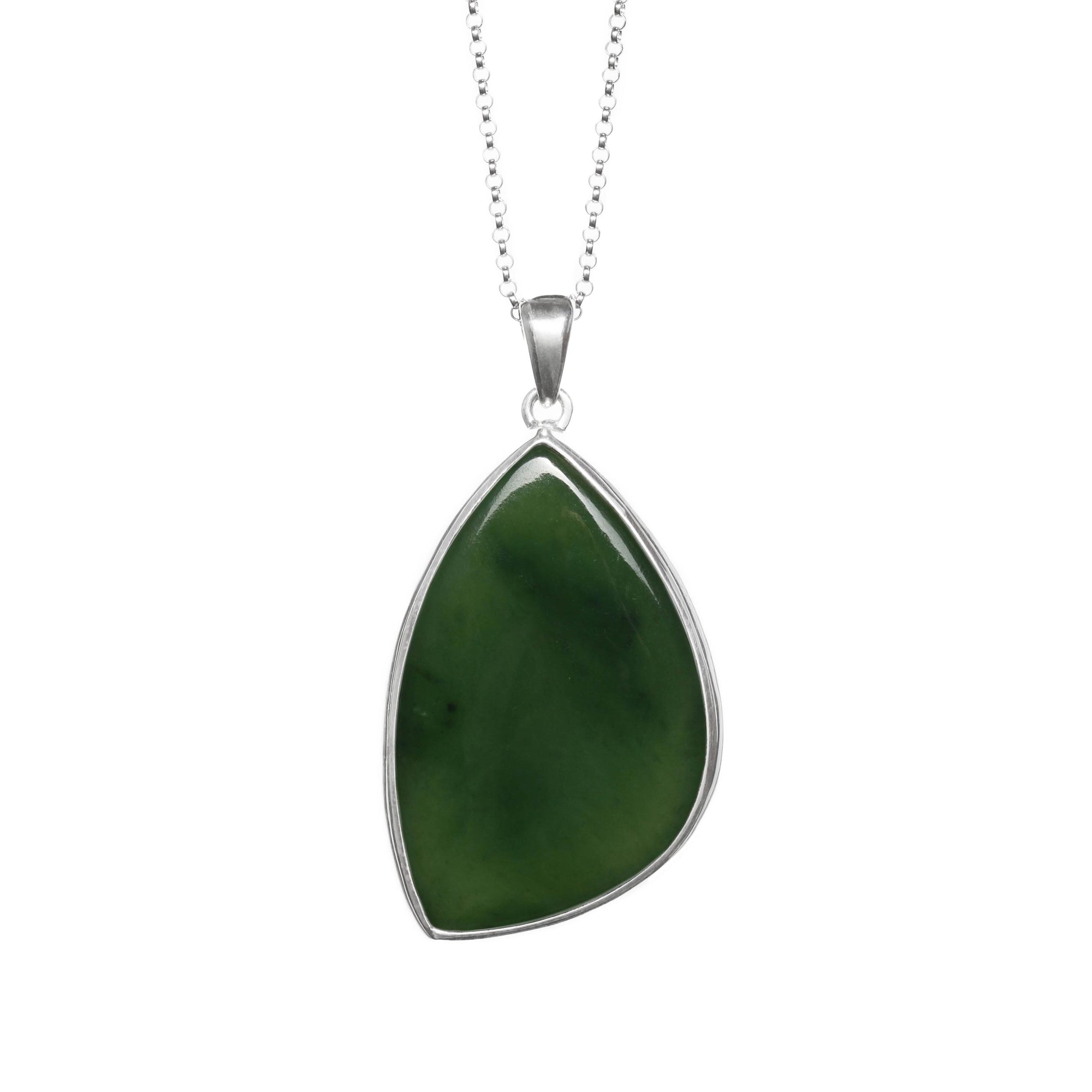 New Zealand Pounamu Sterling Silver Drop Necklace