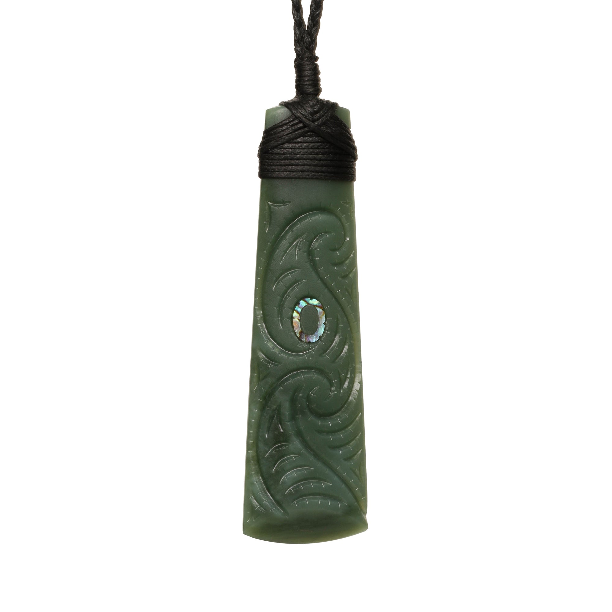 This Toki (Adze) is made from New Zealand pounamu and is carved by Akapita Scally. The piece you see photographed is the piece you will receive. Shop all our Toki (Adze) Corded Necklaces.
